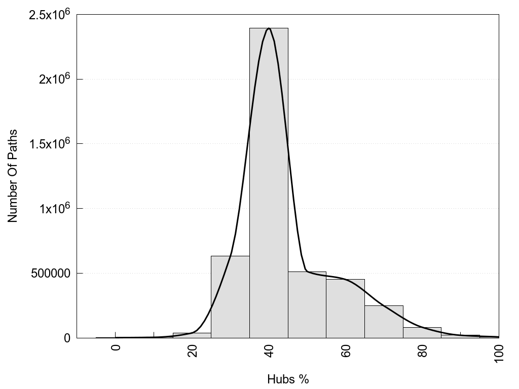Hub1?, Hub2?: "Yes" if the corresponding node has more than 3 links, otherwise "No".