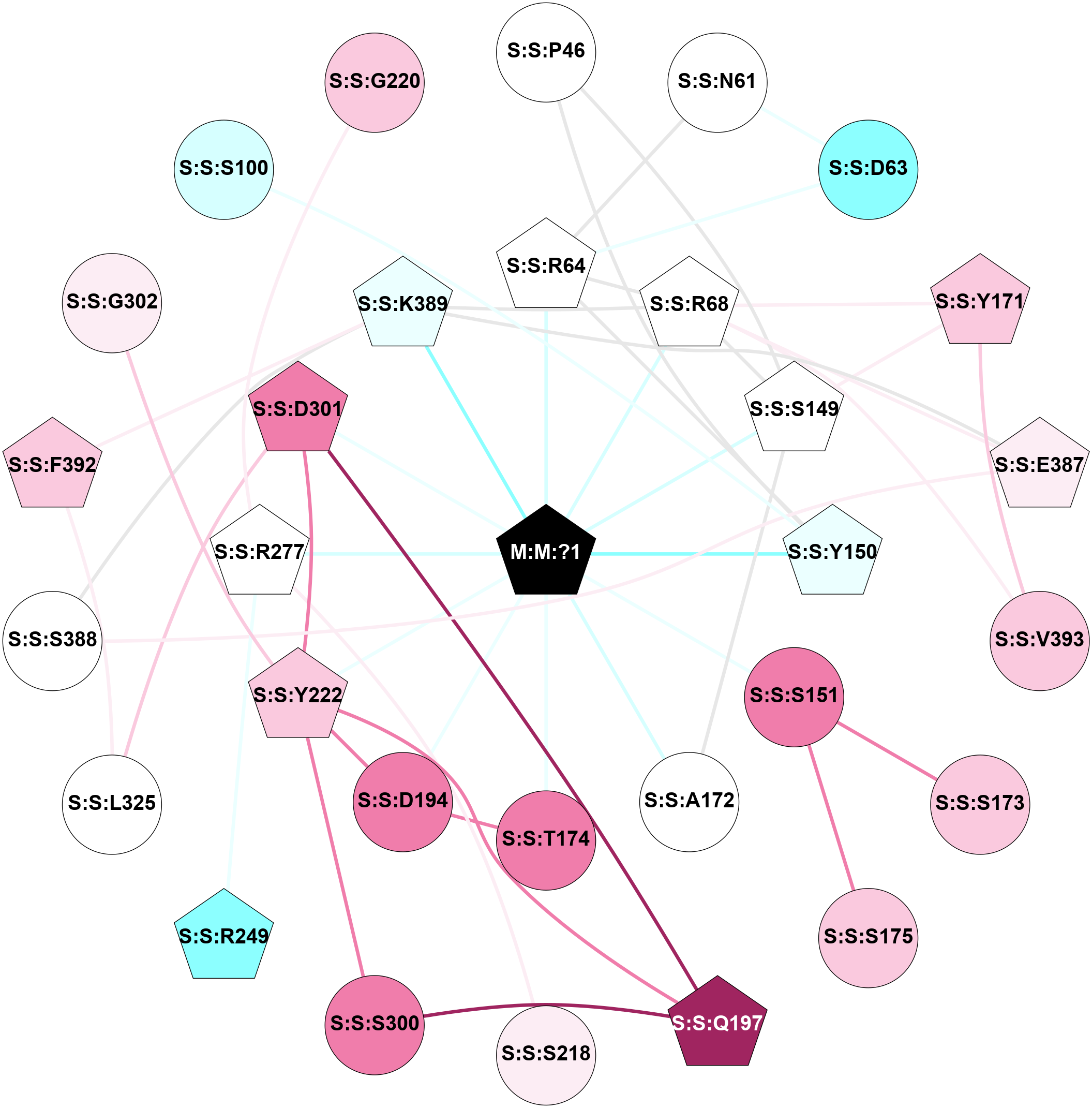 Links and nodes colored according to ConSurf Conservation Grade (See documentation): n/a 1 2 3 4 5 6 7 8 9 |