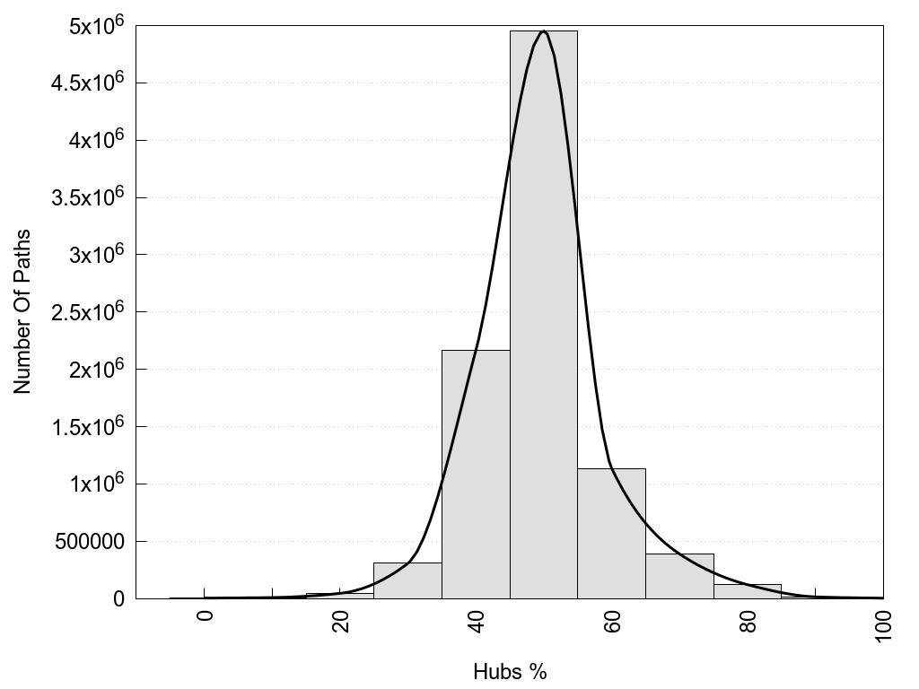 Hub1?, Hub2?: "Yes" if the corresponding node has more than 3 links, otherwise "No".