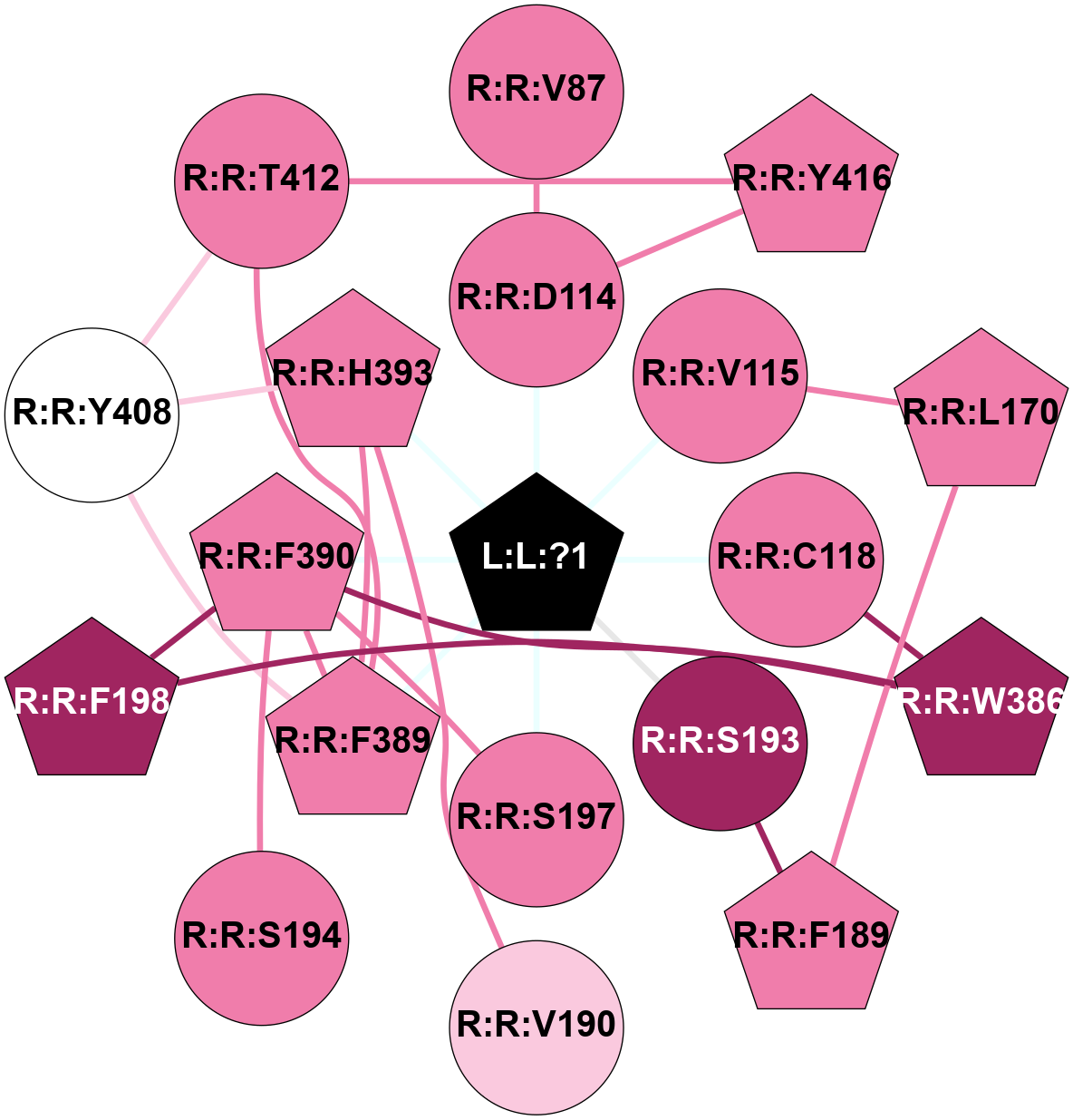 Links and nodes colored according to ConSurf Conservation Grade (See documentation): n/a 1 2 3 4 5 6 7 8 9 |