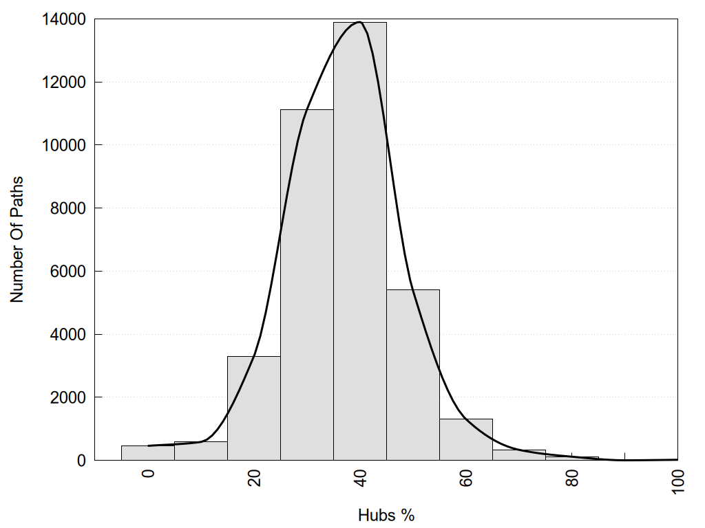 Hub1?, Hub2?: "Yes" if the corresponding node has more than 3 links, otherwise "No".