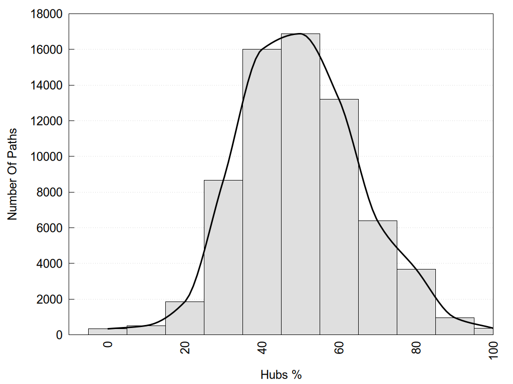 Hub1?, Hub2?: "Yes" if the corresponding node has more than 3 links, otherwise "No".