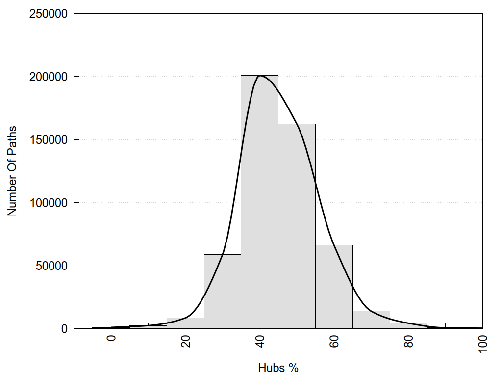 Hub1?, Hub2?: "Yes" if the corresponding node has more than 3 links, otherwise "No".