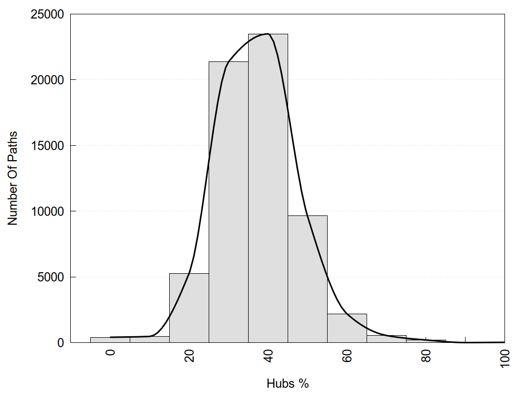 Hub1?, Hub2?: "Yes" if the corresponding node has more than 3 links, otherwise "No".