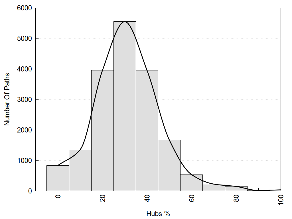 Hub1?, Hub2?: "Yes" if the corresponding node has more than 3 links, otherwise "No".