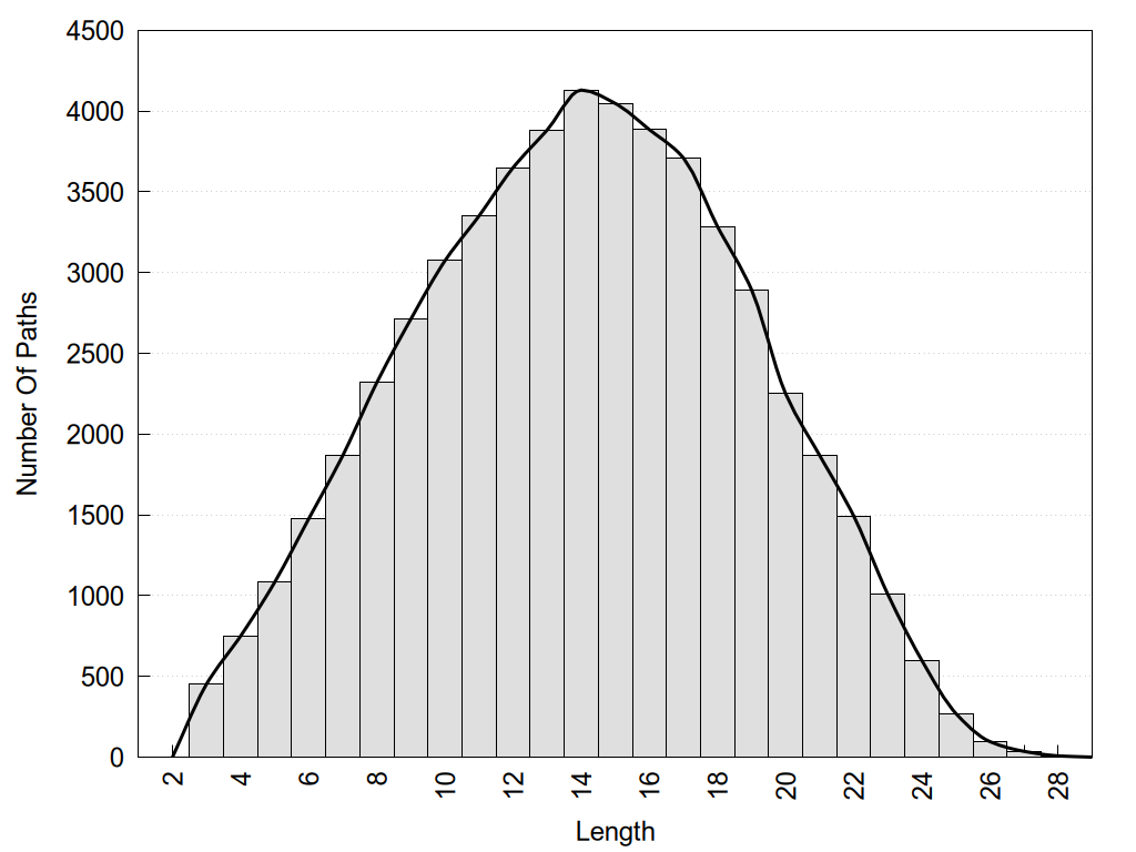 histograms of path distribution according to several parameters