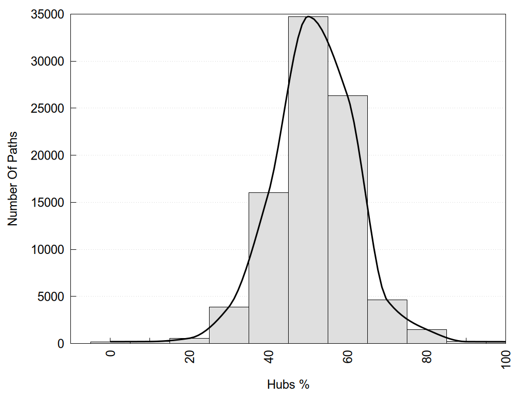 Hub1?, Hub2?: "Yes" if the corresponding node has more than 3 links, otherwise "No".