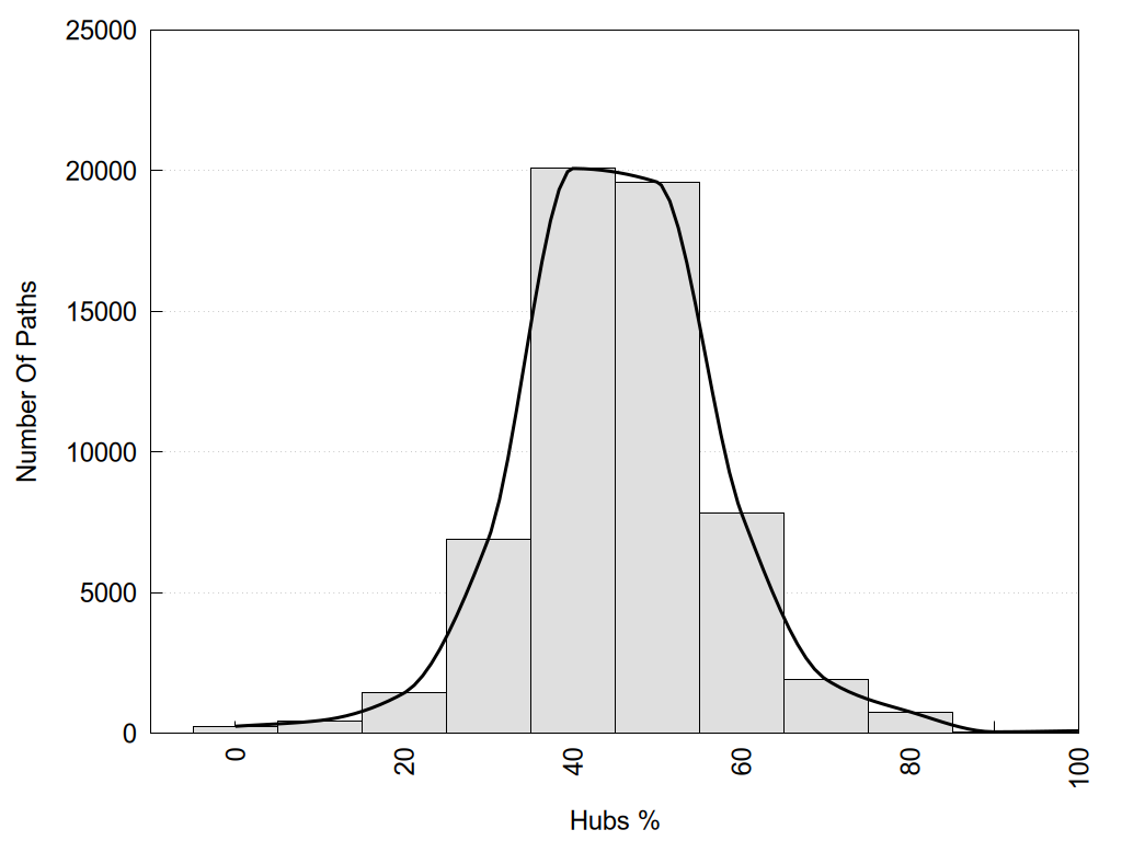 Hub1?, Hub2?: "Yes" if the corresponding node has more than 3 links, otherwise "No".