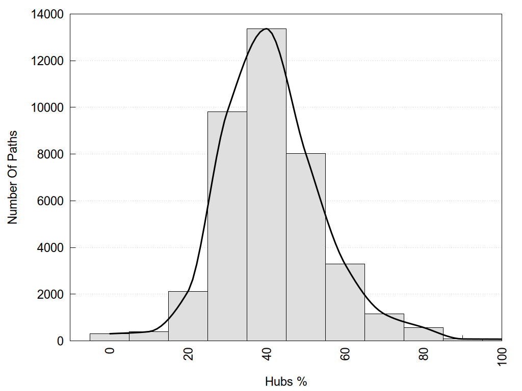 Hub1?, Hub2?: "Yes" if the corresponding node has more than 3 links, otherwise "No".
