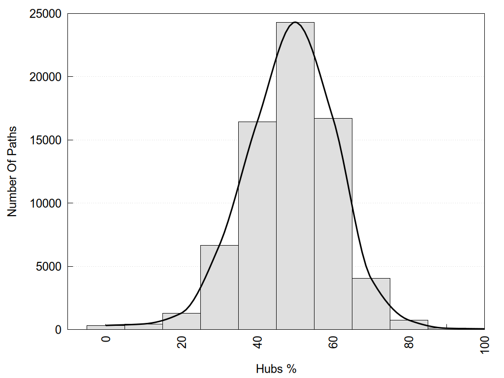 Hub1?, Hub2?: "Yes" if the corresponding node has more than 3 links, otherwise "No".