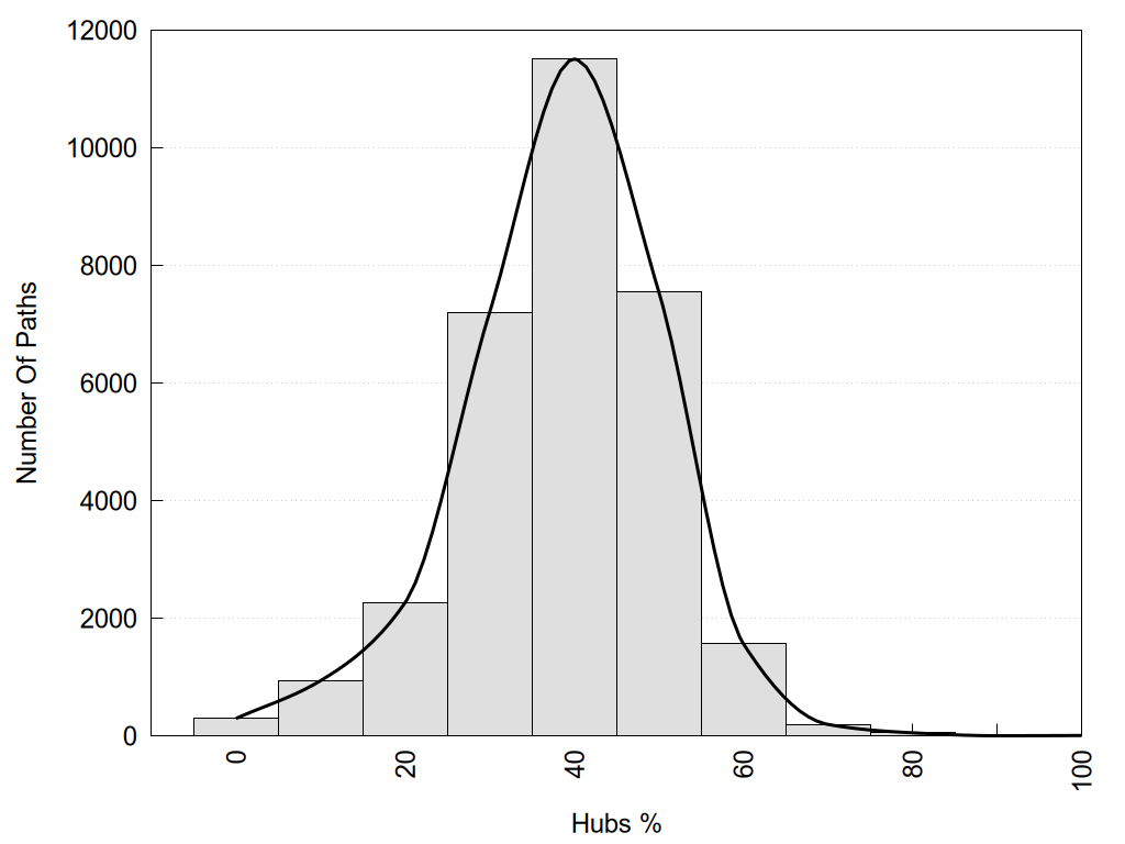Hub1?, Hub2?: "Yes" if the corresponding node has more than 3 links, otherwise "No".
