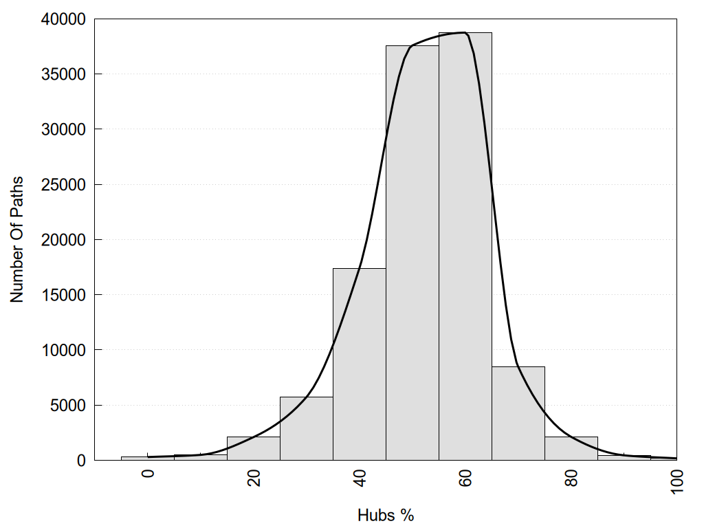 Hub1?, Hub2?: "Yes" if the corresponding node has more than 3 links, otherwise "No".