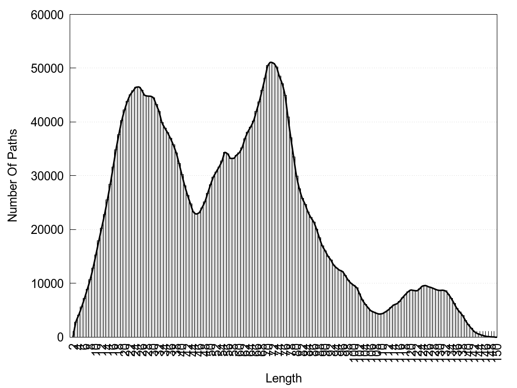 histograms of path distribution according to several parameters