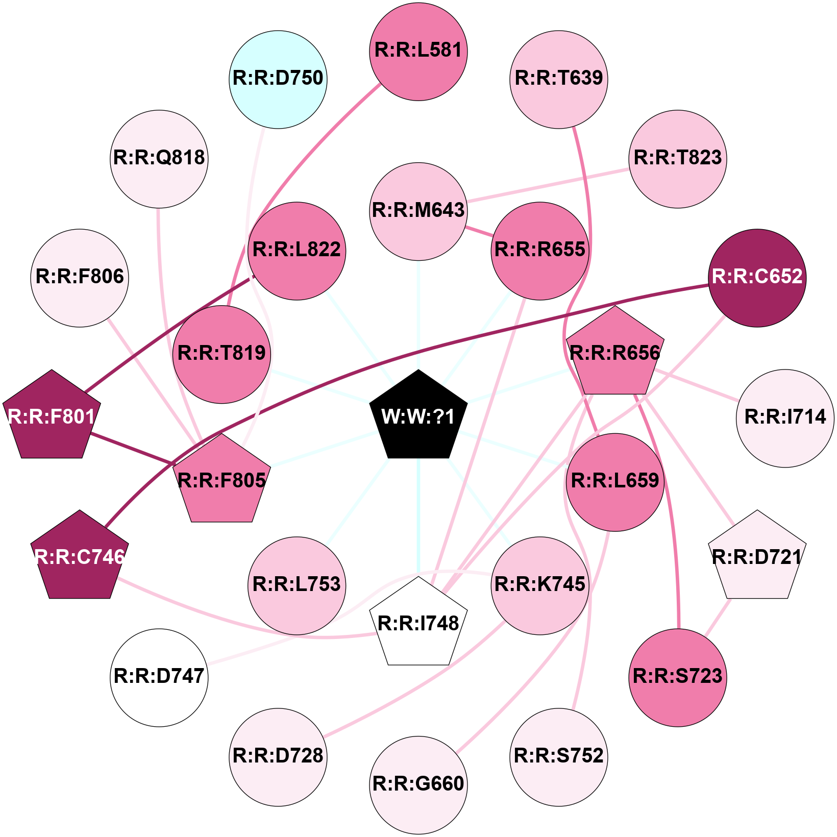 Links and nodes colored according to ConSurf Conservation Grade (See documentation): n/a 1 2 3 4 5 6 7 8 9 |