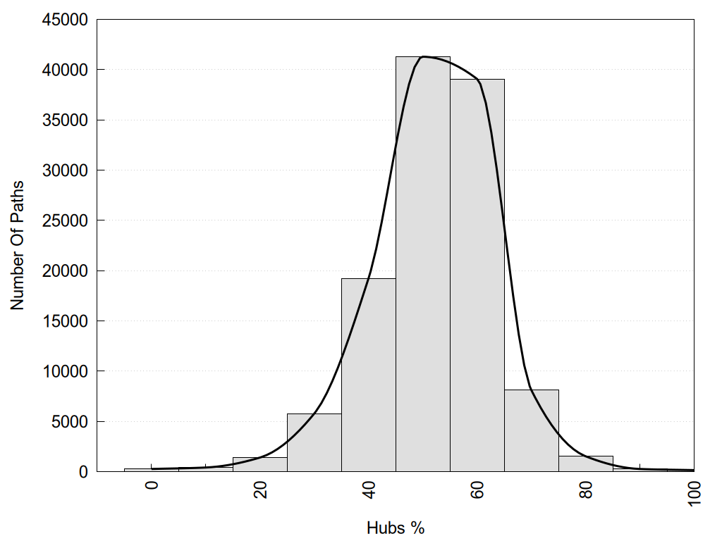 Hub1?, Hub2?: "Yes" if the corresponding node has more than 3 links, otherwise "No".
