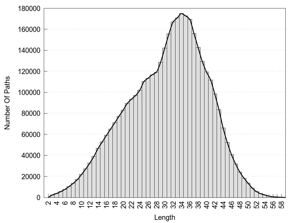 histograms of path distribution according to several parameters