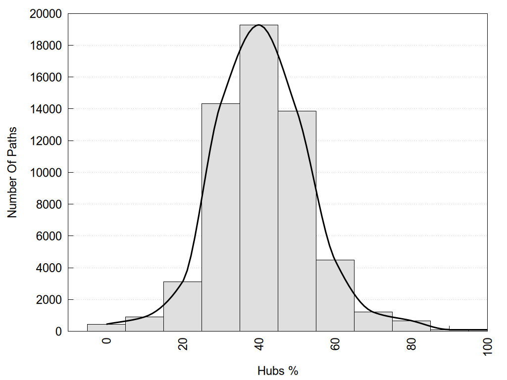 Hub1?, Hub2?: "Yes" if the corresponding node has more than 3 links, otherwise "No".