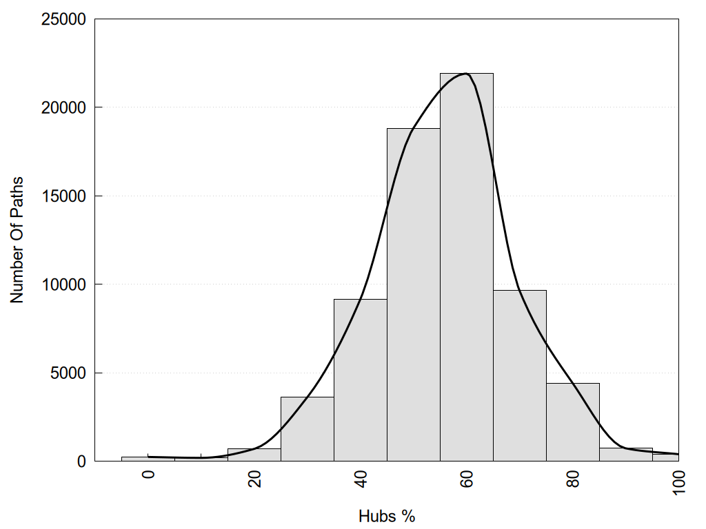 Hub1?, Hub2?: "Yes" if the corresponding node has more than 3 links, otherwise "No".