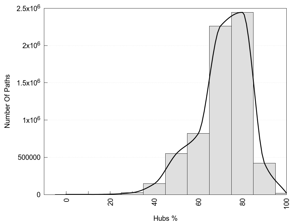 Hub1?, Hub2?: "Yes" if the corresponding node has more than 3 links, otherwise "No".