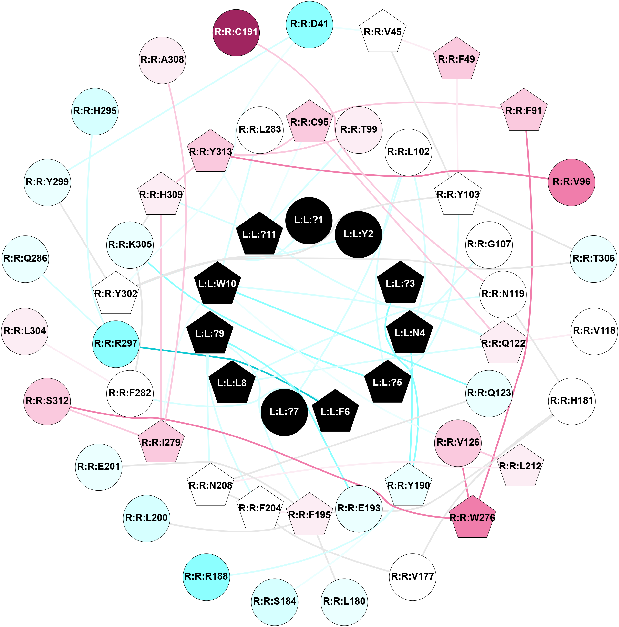 Show 66.67 Single 8XGU TAK448 8XGU-Kiss1-TAK448-Gi1/β1/γ2 Show 66.67 Consensus gi_somatostatin Orthosteric Ligand 7WIC-SST2-Somatostatin-14-Gi1/β1/γ2 7XMS-SST4-Somatostatin-14-Gi1/β1/γ2 8X8L-SST5-Cortistatin-chim(NtGi1-Gs-CtGi1)/β1/γ2 7XMT-SST4-J-2156-Gi1/β1/γ2 7WIG-SST2-L-054,264-Gi1/β1/γ2 8X8N-SST5-Octreotide-chim(NtGi1-Gs-CtGi1)/β1/γ2 7YAE-SST2-Octreotide-Gi1/β1/γ2 7YAC-SST2-Paltusotine-Gi1/β1/γ2 Show 64.00 Single 8ZBI Somatostatin-14 8ZBI-SST3-Somatostatin-14-Gi1/β1/γ2 Show 62.96 Consensus gq_peptide Orthosteric Ligand gq_cck gq_kisspeptin gq_bradykinin gq_bombesin gq_angiotensin Show 61.54 Consensus sst5_on_gp Orthosteric Ligand 8X8L-SST5-Cortistatin-chim(NtGi1-Gs-CtGi1)/β1/γ2 8X8N-SST5-Octreotide-chim(NtGi1-Gs-CtGi1)/β1/γ2 Show 60.00 Consensus peptide_offon Orthosteric Ligand peptide_off peptide_on Show 60.00 Consensus somatostatin_on Orthosteric Ligand sst2_on sst4_on sst5_on Show 60.00 Consensus somatostatin_on_gp Orthosteric Ligand sst2_on_gp sst4_on_gp sst5_on_gp Show 59.26 Consensus gi_peptide Orthosteric Ligand gi_cck gi_apelin gi_compl-pept gi_endothelin gi_formylpeptide gi_galanin gi_ghrelin gi_npy gi_neurotensin gi_opioid gi_orexin gi_relaxin gi_somatostatin Show 58.33 Consensus class-a_on_gp Orthosteric Ligand sensory_on_gp alicarboxylic_on_gp amine_on_gp lipid_on_gp nucleotide_on_gp peptide_on_gp protein_on_gp Show 57.69 Consensus peptide_offon_gp Orthosteric Ligand peptide_on_gp peptide_off Show 57.14 Single 8FEG (DNCP)-Beta-Naloxamine 8FEG-κ-(DNCP)-β-Naloxamine-Gi1/β1/γ2 Show 57.14 Consensus peptide_on Orthosteric Ligand cck_on angiotensin_on apelin_on bombesin_on bradykinin_on compl-peptide_on endothelin_on formylpeptide_on galanin_on ghrelin_on kisspeptin_on melanocortin_on motilin_on neuromedin-u_on npy_on neurotensin_on opioid_on orexin_on relaxin_on somatostatin_on tachykinin_on trh_on vasop-oxy_on Show 57.14 Consensus peptide_on_gp Orthosteric Ligand cck_on_gp angiotensin_on_gp apelin_on_gp bombesin_on_gp bradykinin_on_gp compl-peptide_on_gp endothelin_on_gp formylpeptide_on_gp galanin_on_gp ghrelin_on_gp kisspeptin_on_gp melanocortin_on_gp motilin_on_gp neuromedin-u_on_gp npy_on_gp neurotensin_on_gp opioid_on_gp orexin_on_gp relaxin_on_gp somatostatin_on_gp tachykinin_on_gp trh_on_gp vasop-oxy_on_gp Show 56.52 Consensus class-a_on Orthosteric Ligand sensory_on alicarboxylic_on amine_on lipid_on nucleotide_on peptide_on protein_on Show 56.00 Consensus gq_class-a Orthosteric Ligand gq_peptide gq_amine gq_nucleotide Show 54.55 Single 8HPT C5a anaphylatoxin C-terminal peptide 8HPT-C5a1 -C5a anaphylatoxin C-terminal peptide-Go/β1/γ2 Show 54.17 Single 4UG2 CGS21680 4UG2-A2A -CGS21680 Show 54.17 Single 7XN9 L-054,522 7XN9-SST2-L-054,522 Show 54.17 Single 8IA7 Cholecystokinin-8 8IA7-CCKB -Cholecystokinin-8-chim(NtGi1L-Gq)/β1/γ2 Show 54.17 Consensus ox2_on Orthosteric Ligand 7L1V-OX2 -PubChem 155491009-chim(NtGi1-Gs-CtGq)/β1/γ2 7SQO-OX2 -TAK-925-Gi1/β1/γ2 7L1U-OX2 -Orexin-chim(NtGi1-Gs-CtGq)/β1/γ2 Show 54.17 Consensus ox2_on_gp Orthosteric Ligand 7L1V-OX2 -PubChem 155491009-chim(NtGi1-Gs-CtGq)/β1/γ2 7SQO-OX2 -TAK-925-Gi1/β1/γ2 7L1U-OX2 -Orexin-chim(NtGi1-Gs-CtGq)/β1/γ2 Show 54.17 Consensus sst2_on Orthosteric Ligand 7WIC-SST2-Somatostatin-14-Gi1/β1/γ2 7WIG-SST2-L-054,264-Gi1/β1/γ2 7YAE-SST2-Octreotide-Gi1/β1/γ2 7YAC-SST2-Paltusotine-Gi1/β1/γ2 Show 54.17 Consensus sst2_on_gp Orthosteric Ligand 7WIC-SST2-Somatostatin-14-Gi1/β1/γ2 7WIG-SST2-L-054,264-Gi1/β1/γ2 7YAE-SST2-Octreotide-Gi1/β1/γ2 7YAC-SST2-Paltusotine-Gi1/β1/γ2 Show 53.85 Single 8XIQ L796778 8XIQ-SST3-L796778-chim(NtGi1-Gs-CtGi1)/β1/γ2 Show 53.85 Single 8XIR Pasireotide 8XIR-SST3-Pasireotide-chim(NtGi1-Gs-CtGi1)/β1/γ2 Show 53.57 Single 7F8V Gastrin-17 7F8V-CCKB -Gastrin-17-Gi2/β1/γ2 Show 53.57 Single 8H0P NMB30 8H0P-BB1 -NMB30-chim(NtGi1-Gs-CtGq)/β1/γ2 Show 53.33 Single 8ZJE TAK-448 8ZJE-Kiss1-TAK-448-chim(NtGi1-Gq)/β1/γ1 Show 53.33 Consensus bb2_on Orthosteric Ligand 7W40-BB2 -Bombesin-chim(NtGi1L-Gq)/β1/γ2 7W3Z-BB2 -Gastrin Releasing Peptide-chim(NtGi1L-Gq)/β1/γ2 Show 53.33 Consensus bb2_on_gp Orthosteric Ligand 7W40-BB2 -Bombesin-chim(NtGi1L-Gq)/β1/γ2 7W3Z-BB2 -Gastrin Releasing Peptide-chim(NtGi1L-Gq)/β1/γ2 Show 53.33 Consensus bombesin_on Orthosteric Ligand bb2_on Show 53.33 Consensus bombesin_on_gp Orthosteric Ligand bb2_on_gp Show 53.33 Consensus gq_bombesin Orthosteric Ligand 7W40-BB2 -Bombesin-chim(NtGi1L-Gq)/β1/γ2 7W3Z-BB2 -Gastrin Releasing Peptide-chim(NtGi1L-Gq)/β1/γ2 Show 52.17 Single 7L1V PubChem 155491009 7L1V-OX2 -PubChem 155491009-chim(NtGi1-Gs-CtGq)/β1/γ2 Show 52.17 Single 8I9A EP54 8I9A-C3aB -EP54-chim(NtGi1-Gs-CtGq)/β1/γ2 Show 52.17 Consensus c3a_on Orthosteric Ligand 8HK2-C3aB -C3a anaphylatoxin-Gi1/β1/γ2 8IA8-C3aB -E7 peptide-Gi1/β1/γ2 Show 52.17 Consensus orexin_on Orthosteric Ligand ox2_on Show 52.00 Single 7XAU Octreotide 7XAU-SST2-Octreotide-Gi1/β1/γ2 Show 52.00 Single 8GHV AMG315 8GHV-CB1 -AMG315-Gi1/β1/γ2 Show 52.00 Single 8ZBJ Somatostatin-14 8ZBJ-SST5-Somatostatin-14-Gi1/β1/γ2 Show 52.00 Consensus gi_opioid Orthosteric Ligand 8F7R-μ-Endomorphin-Gi1/β1/γ2 8EF5-μ-Fentanyl-Gi1/β1/γ2 7SCG-μ-FH210-Gi1/β1/γ2 7T2H-μ-Lofentanil-Gi1/β1/γ2 7T2G-μ-Mitragynine Pseudoindoxyl-Gi1/β1/γ2 8DZP-κ-momSalB-Gi1/β1/γ2 8EF6-μ-Morphine-Gi1/β1/γ2 8F7X-NOP-Nociceptin-Gi1/β1/γ2 8EFB-μ-Oliceridine-Gi1/β1/γ2 7U2L-μ-PubChem 163201242-Gi1/β1/γ2 8EFO-μ-PZM21-Gi1/β1/γ2 8EFL-μ-SR17018-Gi1/β1/γ2 8F7Q-μ-β-Endorphin-Gi1/β1/γ2 7U2K-μ-C6-guano-Gi1/β1/γ2 8EFQ-μ-Damgo-Gi1/β1/γ2 8F7S-δ-Deltorphin-Gi1/β1/γ2 8F7W-κ-Dynorphin-Gi1/β1/γ2 Show 52.00 Consensus mop_off Orthosteric Ligand 4DKL-μ-β-Funaltrexamine 8QOT-μ-Nanobody-E 7UL4-μ-Alvimopan Show 52.00 Consensus sst5_on Orthosteric Ligand 8X8L-SST5-Cortistatin-chim(NtGi1-Gs-CtGi1)/β1/γ2 8X8N-SST5-Octreotide-chim(NtGi1-Gs-CtGi1)/β1/γ2 Show 51.85 Single 7W40 Bombesin 7W40-BB2 -Bombesin-chim(NtGi1L-Gq)/β1/γ2 Show 51.85 Single 
