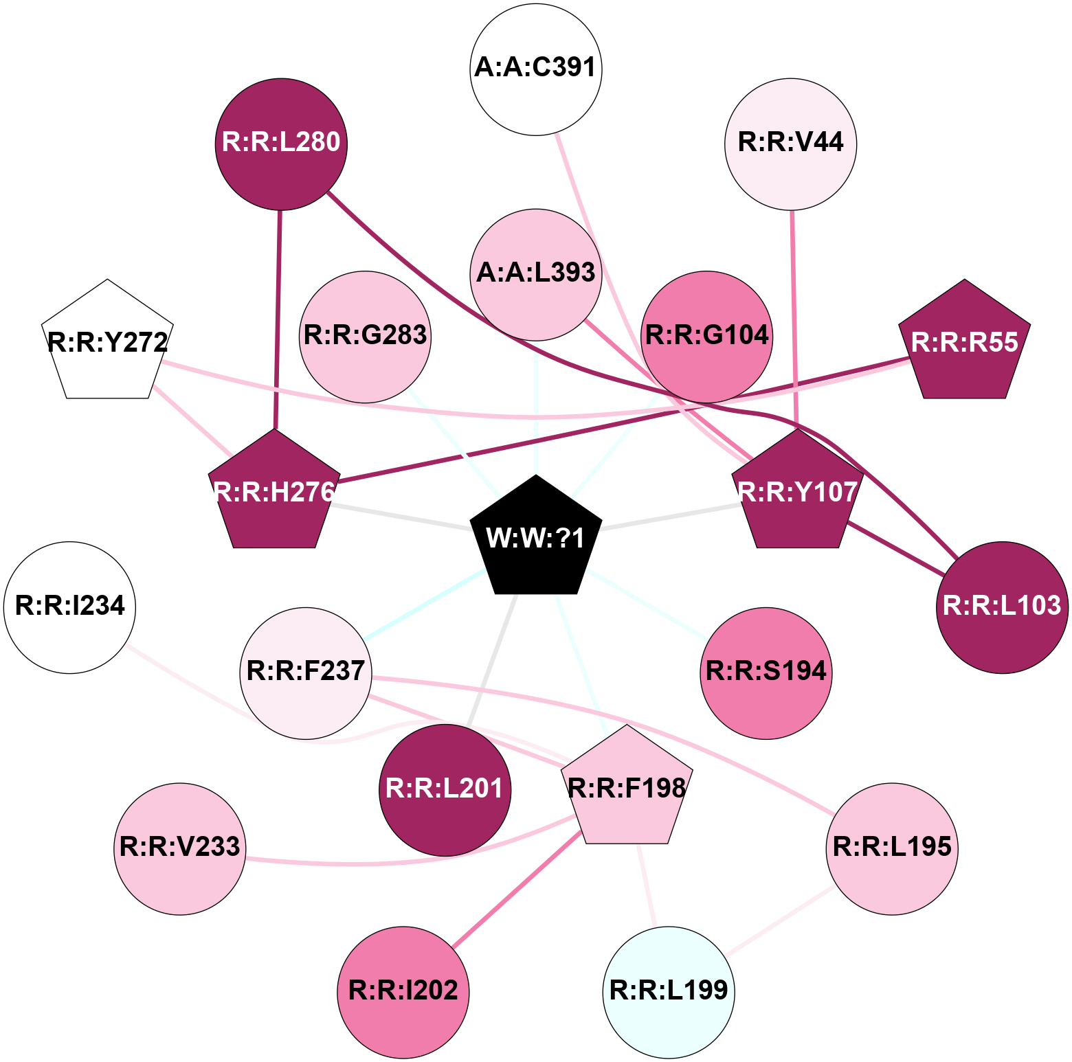 Links and nodes colored according to ConSurf Conservation Grade (See documentation): n/a 1 2 3 4 5 6 7 8 9 |