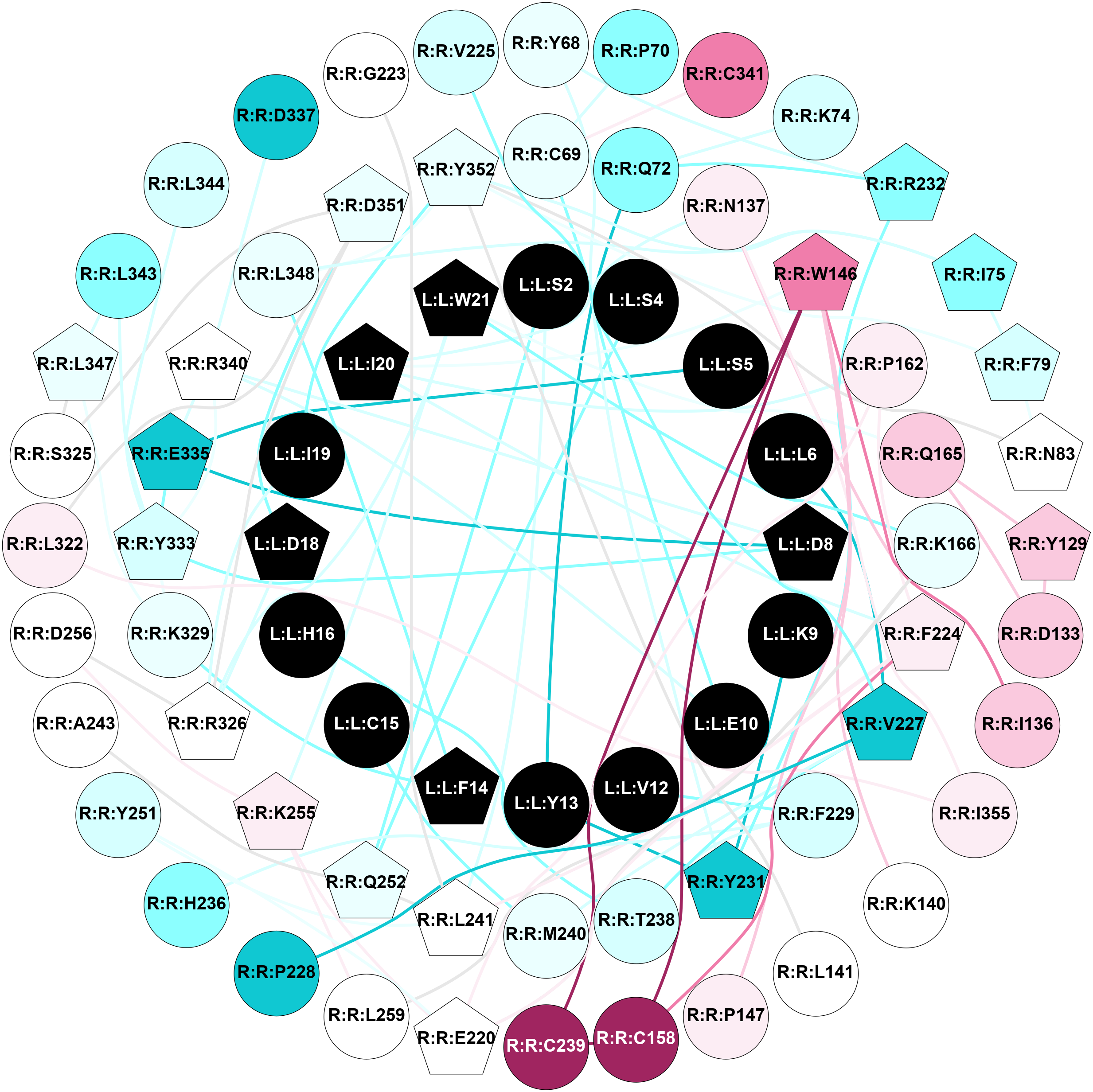 Show 58.62 Single 5GLH Endothelin-1 5GLH-ETB -Endothelin-1 Show 57.14 Single 8XWP Endothelin-1 8XWP-ETB -Endothelin-1-Gi1/β1/γ2 Show 56.67 Consensus endothelin_on_gp Orthosteric Ligand etb_on_gp eta_on_gp Show 55.56 Single 7Y64 C5a anaphylatoxin 7Y64-C5a1 -C5a anaphylatoxin-Gi1/β1/γ2 Show 55.56 Single 8XVH Endothelin-1 8XVH-ETB -Endothelin-1-chim(Gs-CtGq)/β1/γ2 Show 55.17 Single 8IY6 Endothelin-1 8IY6-ETB -Endothelin-1 Show 55.17 Consensus endothelin_on Orthosteric Ligand etb_on eta_on Show 53.85 Consensus compl-peptide_on_gp Orthosteric Ligand c5a1_on_gp c3a_on_gp Show 53.57 Consensus ccr5_on Orthosteric Ligand 7O7F-CCR5-6P4-CCL5-Gi1/β1/γ1 7F1Q-CCR5-MIP-1a-Gi1/β1/γ2 Show 53.57 Consensus gi_compl-pept Orthosteric Ligand 8HK5-C5a1 -Complement C5-Gi1/β1/γ2 8IA8-C3aB -E7 peptide-Gi1/β1/γ2 7Y66-C5a1 -BM213-Gi1/β1/γ2 7Y67-C5a1 -C089 peptide-Gi1/β1/γ2 8HK2-C3aB -C3a anaphylatoxin-Gi1/β1/γ2 7Y64-C5a1 -C5a anaphylatoxin-Gi1/β1/γ2 Show 53.33 Consensus ccr5_on_gp Orthosteric Ligand 7O7F-CCR5-6P4-CCL5-Gi1/β1/γ1 7F1Q-CCR5-MIP-1a-Gi1/β1/γ2 Show 52.00 Consensus p2y_on Orthosteric Ligand p2y1_on p2y10_on p2y12_on Show 51.85 Single 8XWQ Endothelin-1 8XWQ-ETB -Endothelin-1-Gi1/β1/γ2 Show 51.85 Consensus p2y_on_gp Orthosteric Ligand p2y1_on_gp p2y10_on_gp p2y12_on_gp Show 50.00 Single 6LRY Sarafotoxin-B 6LRY-ETB -Sarafotoxin-B Show 50.00 Single 8HK5 Complement C5 8HK5-C5a1 -Complement C5-Gi1/β1/γ2 Show 50.00 Single 8IY5 Endothelin-1 8IY5-ETB -Endothelin-1-Gi1/β1/γ2 Show 50.00 Single 8ZRT ET-1 8ZRT-ETB -ET-1 Show 50.00 Consensus chemokine_on_gp Orthosteric Ligand ccr_on_gp cxcr_on_gp Show 50.00 Consensus compl-peptide_on Orthosteric Ligand c5a1_on c3a_on Show 48.39 Single 6IGK Endothelin-3 6IGK-ETB -Endothelin-3 Show 48.28 Single 5UIW 5P7-CCL5 5UIW-CCR5-5P7-CCL5 Show 48.28 Single 7SK3 CXCL12 7SK3-ACKR3-CXCL12 Show 48.28 Single 8XQF Apelin-13 8XQF-Apelin-Apelin-13-Gi1/β1/γ2 Show 48.28 Single 8XVE BQ3020 8XVE-ETB -BQ3020-chim(Gs-CtGq)/β1/γ2 Show 48.28 Consensus ccr5_off Orthosteric Ligand 5UIW-CCR5-5P7-CCL5 Show 48.28 Consensus gi_peptide Orthosteric Ligand gi_cck gi_apelin gi_compl-pept gi_endothelin gi_formylpeptide gi_galanin gi_ghrelin gi_npy gi_neurotensin gi_opioid gi_orexin gi_relaxin gi_somatostatin Show 48.15 Single 3OE0 CVX15 3OE0-CXCR4-CVX15 Show 48.15 Single 7XA3 CCL2 7XA3-CCR2-CCL2-Gi1/β1/γ2 Show 48.15 Single 8XZH MM07 8XZH-Apelin-MM07-Gi1/β1/γ2 Show 48.15 Consensus ccr2_on Orthosteric Ligand 7XA3-CCR2-CCL2-Gi1/β1/γ2 Show 48.15 Consensus ccr2_on_gp Orthosteric Ligand 7XA3-CCR2-CCL2-Gi1/β1/γ2 Show 46.67 Single 7XAT Somatostatin-14 7XAT-SST2-Somatostatin-14-Gi1/β1/γ2 Show 46.43 Single 8XZJ WN353 8XZJ-Apelin-WN353-Gi1/β1/γ2 Show 46.15 Single 8K3Z CXCL12 8K3Z-CXCR4-CXCL12-Gi1/β1/γ1 Show 46.15 Single 9HB3 Mambaquaretin-1 9HB3-V2 -Mambaquaretin-1 Show 45.83 Single 8HK2 C3a anaphylatoxin 8HK2-C3aB -C3a anaphylatoxin-Gi1/β1/γ2 Show 45.83 Consensus c3a_on Orthosteric Ligand 8HK2-C3aB -C3a anaphylatoxin-Gi1/β1/γ2 8IA8-C3aB -E7 peptide-Gi1/β1/γ2 Show 45.16 Single 6IGL IRL1620 6IGL-ETB -IRL1620 Show 45.16 Consensus bk2_on Orthosteric Ligand 7F6H-BK2 -Bradykinin-Gq/β1/γ2 7F6I-BK2 -Kallidin-Gq/β1/γ2 Show 45.16 Consensus bk2_on_gp Orthosteric Ligand 7F6H-BK2 -Bradykinin-Gq/β1/γ2 7F6I-BK2 -Kallidin-Gq/β1/γ2 Show 45.16 Consensus bradykinin_on Orthosteric Ligand bk2_on Show 45.16 Consensus bradykinin_on_gp Orthosteric Ligand bk2_on_gp Show 45.16 Consensus etb_on Orthosteric Ligand 8IY5-ETB -Endothelin-1-Gi1/β1/γ2 8HBD-ETB -IRL1620-Gi1/β1/γ2 Show 45.16 Consensus gq_bradykinin Orthosteric Ligand 7F6H-BK2 -Bradykinin-Gq/β1/γ2 7F6I-BK2 -Kallidin-Gq/β1/γ2 Show 44.83 Single 7F6H Bradykinin 7F6H-BK2 -Bradykinin-Gq/β1/γ2 Show 44.83 Single 8HCQ Endothelin-1 8HCQ-ETA -Endothelin-1-chim(NtGi1-Gs-CtGq)/β1/γ2 Show 44.83 Single 8HCX Endothelin-1 8HCX-ETB -Endothelin-1-chim(NtGi2L-Gs-CtGq)/β1/γ2 Show 44.83 Consensus cxcr_off Orthosteric Ligand cxcr3_off cxcr4_off Show 44.83 Consensus eta_on Orthosteric Ligand 8HCQ-ETA -Endothelin-1-chim(NtGi1-Gs-CtGq)/β1/γ2 Show 44.83 Consensus eta_on_gp Orthosteric Ligand 8HCQ-ETA -Endothelin-1-chim(NtGi1-Gs-CtGq)/β1/γ2 Show 44.83 Consensus gi_chemokine Orthosteric Ligand 6WWZ-CCR6-CCL20-Go/β1/γ2 8HNK-CXCR3-CXCL11-Gi1/β1/γ2 8K3Z-CXCR4-CXCL12-Gi1/β1/γ1 8IC0-CXCR1-Interleukin-8-Gi1/β1/γ2 6LFM-CXCR2-Interleukin-8-Gi1/β1/γ2 8KFX-CCR8-LMD-009-Gi1/β1/γ2 7F1Q-CCR5-MIP-1a-Gi1/β1/γ2 8HNL-CXCR3-PS372424-Gi1/β1/γ2 8KFY-CCR8-ZK-756326-Gi1/β1/γ2 7O7F-CCR5-6P4-CCL5-Gi1/β1/γ1 8U1U-CCR8-CCL1-Gi1/β1/γ2 7VLA-CCR1-CCL15(27-92)-Gi1/β1/γ2 7XA3-CCR2-CCL2-Gi1/β1/γ2 Show 44.44 Single 7F1Q MIP-1a 7F1Q-CCR5-MIP-1a-Gi1/β1/γ2 Show 44.44 Single 7RKM Fractalkine 7RKM-US28-Fractalkine-Gi1/β1/γ2 Show 44.44 Single 7XMS Somatostatin-14 7XMS-SST4-Somatostatin-14-Gi1/β1/γ2 Show 44.44 Single 8Z7J Agonistic antibody 8Z7J-Apelin-Agonistic antibody-Gi1/β1/γ2 Show 44.44 Consensus gi_ghrelin Orthosteric Ligand 7NA7-Ghrelin-Ghrelin-27-Gi1/β1/γ2 7NA8-Ghrelin-PubChem 178024-Gi1/β1/γ2 Show 44.00 Single 4RWS vMIP-II 4RWS-CXCR4-vMIP-II Show 44.00 Single 7Y65 C5a peptide 7Y65-C5a1 -C5a peptide-Gi1/β1/γ2 Show 44.00 Consensus c3a_on_gp Orthosteric Ligand 8HK2-C3aB -C3a anaphylatoxin-Gi1/β1/γ2 8IA8-C3aB -E7 peptide-Gi1/β1/γ2 Show 43.75 Consensus gi_endothelin Orthosteric Ligand 8IY5-ETB -Endothelin-1-Gi1/β1/γ2 8HBD-ETB -IRL1620-Gi1/β1/γ2 Show 43.33 Consensus ccr_off Orthosteric Ligand ccr2_off ccr5_off Show 42.86 Single 6LW5 WKYMVm 6LW5-FPR2-ALX-WKYMVm Show 42.86 Single 7O7F 6P4-CCL5 7O7F-CCR5-6P4-CCL5-Gi1/β1/γ1 Show 42.86 Single 7T6T fMLFII 7T6T-FPR1-ALX-fMLFII-Gi1/β1/γ2 Show 42.86 Single 8XIR Pasireotide 8XIR-SST3-Pasireotide-chim(NtGi1-Gs-CtGi1)/β1/γ2 Show 42.86 Consensus cxcr4_on_gp Orthosteric Ligand 8K3Z-CXCR4-CXCL12-Gi1/β1/γ1 Show 42.86 Consensus gs_cck Orthosteric Ligand 7MBX-CCKA -Cholecystokinin-8-Gs/β1/γ1 Show 42.42 Single 8HBD IRL1620 8HBD-ETB -IRL1620-Gi1/β1/γ2 Show 42.42 Consensus etb_on_gp 