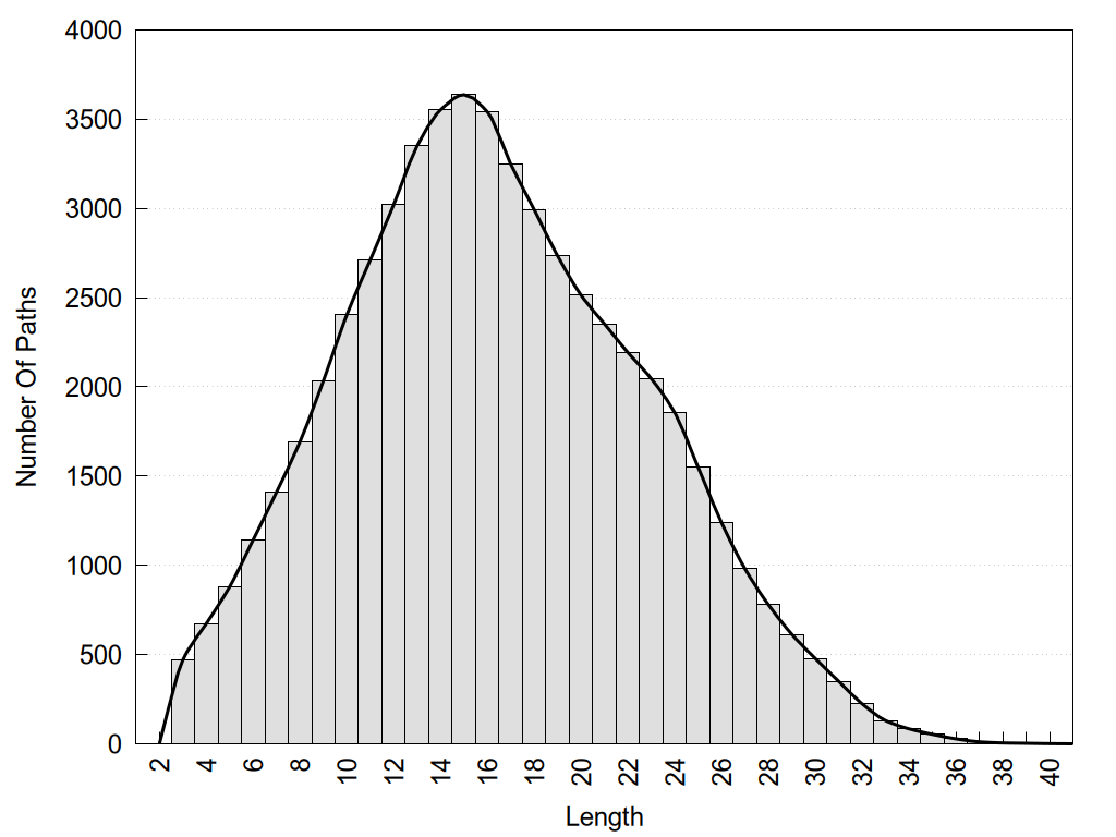 histograms of path distribution according to several parameters