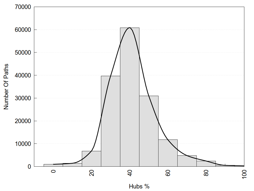 Hub1?, Hub2?: "Yes" if the corresponding node has more than 3 links, otherwise "No".
