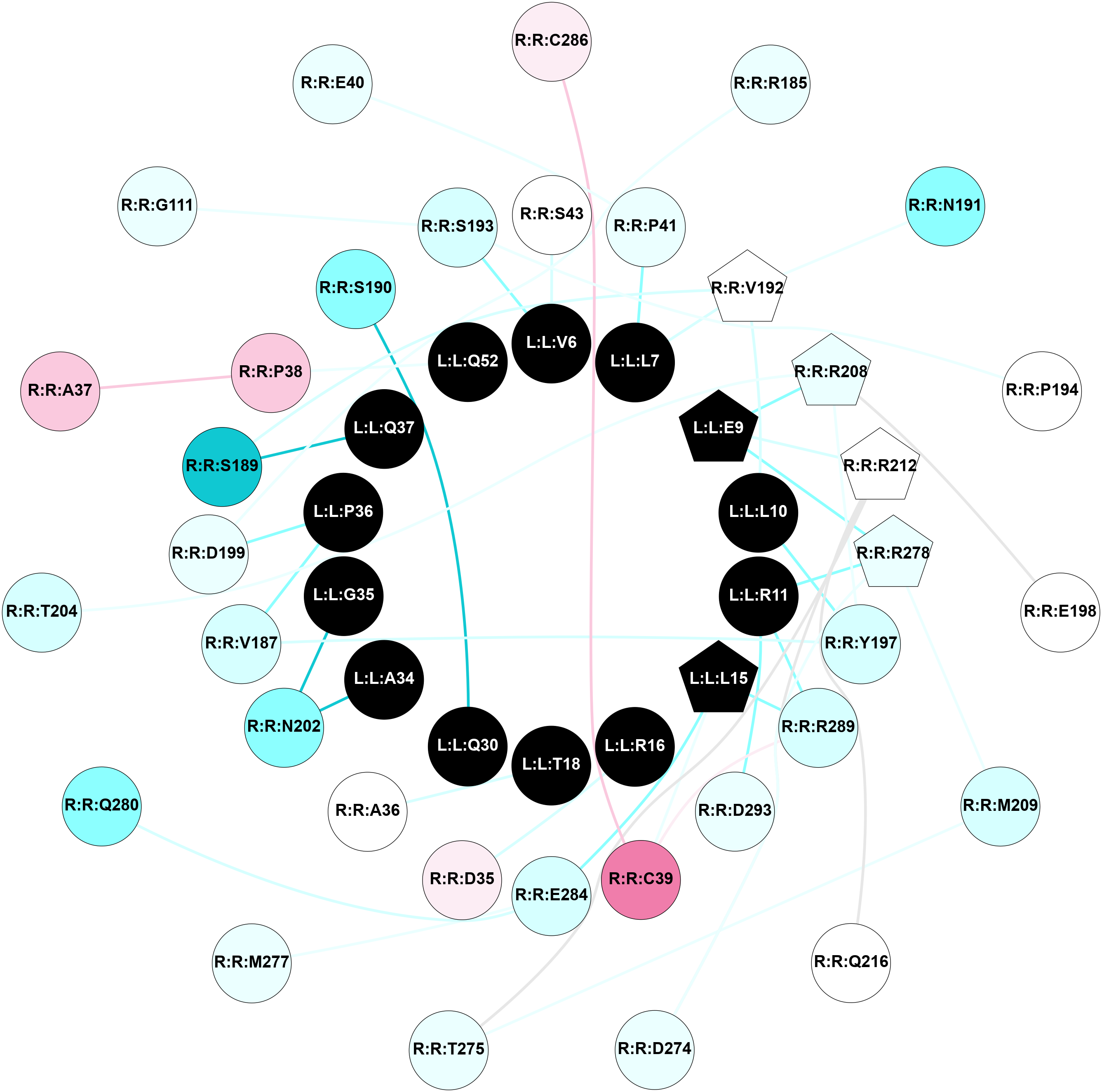 Show 69.23 Single 8XX7 CXCL5 8XX7-CXCR2-CXCL5-Go/β1/γ2 Show 64.29 Single 8XWA CXCL1 8XWA-CXCR2-CXCL1 Show 64.29 Single 8XWM CXCL6 8XWM-CXCR2-CXCL6 Show 64.29 Single 8XWS CXCL5 8XWS-CXCR2-CXCL5 Show 61.54 Single 6LFM Interleukin-8 6LFM-CXCR2-Interleukin-8-Gi1/β1/γ2 Show 61.54 Consensus cxcr2_on_gp Orthosteric Ligand 6LFM-CXCR2-Interleukin-8-Gi1/β1/γ2 Show 60.00 Single 8XVU CXCL2 8XVU-CXCR2-CXCL2 Show 60.00 Single 8XWF CXCL3 8XWF-CXCR2-CXCL3 Show 60.00 Single 8XWV CXCL1 8XWV-CXCR2-CXCL1-Go/β1/γ2 Show 60.00 Single 8XXH CXCL2 8XXH-CXCR2-CXCL2-Go/β1/γ2 Show 58.33 Consensus cxcr2_on Orthosteric Ligand 6LFM-CXCR2-Interleukin-8-Gi1/β1/γ2 Show 57.14 Single 7SK7 CXCL12 7SK7-ACKR3-CXCL12-CCX662 Show 56.25 Single 8XX6 CXCL8 8XX6-CXCR2-CXCL8-Go/β1/γ2 Show 53.85 Single 8IC0 Interleukin-8 8IC0-CXCR1-Interleukin-8-Gi1/β1/γ2 Show 53.85 Consensus cxcr1_on_gp Orthosteric Ligand 8IC0-CXCR1-Interleukin-8-Gi1/β1/γ2 Show 53.33 Single 8XX3 CXCL3 8XX3-CXCR2-CXCL3-Go/β1/γ2 Show 52.94 Single 8XWN CXCL8 8XWN-CXCR2-CXCL8 Show 45.45 Single 4XNW MRS2500 4XNW-P2Y1 -MRS2500 Show 45.45 Consensus p2y1_off Orthosteric Ligand 4XNW-P2Y1 -MRS2500 Show 44.44 Consensus chemokine_on Orthosteric Ligand ccr_on cxcr_on Show 42.86 Single 8TH3 AT118-H Nanobody 8TH3-AT1 -AT118-H Nanobody Show 41.67 Single 9E7R GB88 9E7R-PAR2-GB88-chim(NtGi1L-Gs-CtGq)/β1/γ2 Show 41.18 Single 6UP7 Neurotensin 6UP7-NTS1 -Neurotensin-Arrestin2 Show 41.18 Single 8K4O CXCL1 8K4O-KSHV-CXCL1-Gi1/β1/γ1 Show 40.00 Single 3OE0 CVX15 3OE0-CXCR4-CVX15 Show 40.00 Single 4JKV Taladegib 4JKV-SMO-Taladegib Show 40.00 Single 8TH4 AT118-L Nanobody 8TH4-AT1 -Losartan-AT118-L Nanobody Show 38.89 Single 6KNM JN241-9 6KNM-Apelin-JN241-9 Show 38.89 Single 6OS9 JMV449 6OS9-NTS1 -JMV449-Gi1/β1/γ2 Show 38.89 Single 8XQJ JN241 8XQJ-Apelin-JN241 Show 38.89 Consensus cxcr4_off Orthosteric Ligand 4RWS-CXCR4-vMIP-II 3OE0-CXCR4-CVX15 3OE6-CXCR4-IT1t Show 38.46 Single 4BWB Neurotensin 4BWB-NTS1 -Neurotensin Show 38.46 Single 6LFO Interleukin-8 6LFO-CXCR2-Interleukin-8-Gi1/β1/γ2 Show 38.46 Single 7VV5 C48/80 7VV5-MRGPRX2-C48/80-Gi1/β1/γ2 Show 38.46 Consensus cxcr1_on Orthosteric Ligand 8IC0-CXCR1-Interleukin-8-Gi1/β1/γ2 Show 38.46 Consensus p2y1_on Orthosteric Ligand 7XXH-P2Y1 -2MeSADP-chim(NtGi1-G11)/β1/γ2 Show 37.50 Single 5V56 TC114 5V56-SMO-TC114 Show 37.50 Single 5V57 TC114 5V57-SMO-TC114 Show 37.50 Single 8FMZ Neurotensin/Neuromedin-N 8FMZ-NTS1 -Neurotensin/Neuromedin-N-chim(NtGi2L-Gs-CtGq)/β1/γ2 Show 36.84 Single 7L0R Neurotensin 7L0R-NTS1 -Neurotensin-Gi1/β1/γ1 Show 36.36 Single 8HNK CXCL11 8HNK-CXCR3-CXCL11-Gi1/β1/γ2 Show 36.36 Consensus chemokine_on_gp Orthosteric Ligand ccr_on_gp cxcr_on_gp Show 36.36 Consensus gi_chemokine Orthosteric Ligand 6WWZ-CCR6-CCL20-Go/β1/γ2 8HNK-CXCR3-CXCL11-Gi1/β1/γ2 8K3Z-CXCR4-CXCL12-Gi1/β1/γ1 8IC0-CXCR1-Interleukin-8-Gi1/β1/γ2 6LFM-CXCR2-Interleukin-8-Gi1/β1/γ2 8KFX-CCR8-LMD-009-Gi1/β1/γ2 7F1Q-CCR5-MIP-1a-Gi1/β1/γ2 8HNL-CXCR3-PS372424-Gi1/β1/γ2 8KFY-CCR8-ZK-756326-Gi1/β1/γ2 7O7F-CCR5-6P4-CCL5-Gi1/β1/γ1 8U1U-CCR8-CCL1-Gi1/β1/γ2 7VLA-CCR1-CCL15(27-92)-Gi1/β1/γ2 7XA3-CCR2-CCL2-Gi1/β1/γ2 Show 36.36 Consensus p2y_off Orthosteric Ligand p2y1_off Show 35.71 Single 7VV6 C48/80 7VV6-MRGPRX2-C48/80 Show 35.71 Single 7XXH 2MeSADP 7XXH-P2Y1 -2MeSADP-chim(NtGi1-G11)/β1/γ2 Show 35.71 Consensus p2y1_on_gp Orthosteric Ligand 7XXH-P2Y1 -2MeSADP-chim(NtGi1-G11)/β1/γ2 Show 35.29 Single 6OSA JMV449 6OSA-NTS1 -JMV449-Gi1/β1/γ2 Show 35.29 Single 7L0S Neurotensin 7L0S-NTS1 -Neurotensin-Gi1/β1/γ1 Show 35.29 Single 7Y66 BM213 7Y66-C5a1 -BM213-Gi1/β1/γ2 Show 35.29 Single 8JPC Neurotensin-(8-13) 8JPC-NTS1 -Neurotensin-(8-13)-SBI-553; GDP; Mg-Gq; GRK2 Show 35.29 Single 8XQJ JN241 8XQJ-Apelin-JN241 Show 35.29 Consensus cxcr_on Orthosteric Ligand cxcr3_on cxcr4_on cxcr1_on cxcr2_on Show 35.29 Consensus gi_neurotensin Orthosteric Ligand 6OSA-NTS1 -JMV449-Gi1/β1/γ2 7L0S-NTS1 -Neurotensin-Gi1/β1/γ1 Show 35.29 Consensus neurotensin_on_gp Orthosteric Ligand nts1_on_gp Show 35.29 Consensus nts1_on_gp Orthosteric Ligand 6OSA-NTS1 -JMV449-Gi1/β1/γ2 7L0S-NTS1 -Neurotensin-Gi1/β1/γ1 Show 35.00 Single 7C6A (Sar1,Ile8)-Angiotensin II 7C6A-AT2 -(Sar1,Ile8)-Angiotensin II Show 34.62 Single 7SK6 CXCL12_LRHQ 7SK6-ACKR3-CXCL12_LRHQ Show 33.33 Single 4QIM ANTA XV 4QIM-SMO-ANTA XV Show 33.33 Single 4RWS vMIP-II 4RWS-CXCR4-vMIP-II Show 33.33 Single 6D32 Cyclopamine 6D32-SMO-Cyclopamine-Cyclopamine Show 33.33 Single 7FIH Org43553 7FIH-LH-hCG-Org43553-chim(NtGi1-Gs)/β1/γ2 Show 33.33 Single 7SK8 CXCL12 7SK8-ACKR3-CXCL12-CCX662 Show 33.33 Single 7XA3 CCL2 7XA3-CCR2-CCL2-Gi1/β1/γ2 Show 33.33 Single 8JPF Neurotensin 8JPF-NTS1 -Neurotensin-SBI-553 Show 33.33 Single 8JPS CCL7 8JPS-ACKR1-CCL7 Show 33.33 Single 8ZPL HF51116 8ZPL-CXCR4-HF51116 Show 33.33 Consensus ccr2_on Orthosteric Ligand 7XA3-CCR2-CCL2-Gi1/β1/γ2 Show 33.33 Consensus ccr2_on_gp Orthosteric Ligand 7XA3-CCR2-CCL2-Gi1/β1/γ2 Show 32.00 Single 8IY5 Endothelin-1 8IY5-ETB -Endothelin-1-Gi1/β1/γ2 Show 32.00 Single 8IY6 Endothelin-1 8IY6-ETB -Endothelin-1 Show 32.00 Consensus bk2_on Orthosteric Ligand 7F6H-BK2 -Bradykinin-Gq/β1/γ2 7F6I-BK2 -Kallidin-Gq/β1/γ2 Show 32.00 Consensus bk2_on_gp Orthosteric Ligand 7F6H-BK2 -Bradykinin-Gq/β1/γ2 7F6I-BK2 -Kallidin-Gq/β1/γ2 Show 32.00 Consensus bradykinin_on Orthosteric Ligand bk2_on Show 32.00 Consensus bradykinin_on_gp Orthosteric Ligand bk2_on_gp Show 32.00 Consensus endothelin_on Orthosteric Ligand etb_on eta_on Show 32.00 Consensus gq_bradykinin Orthosteric Ligand 7F6H-BK2 -Bradykinin-Gq/β1/γ2 7F6I-BK2 -Kallidin-Gq/β1/γ2 Show 31.58 Single 7XBX CX3CL1 7XBX-CX3CR1-CX3CL1-Gi1/β1/γ2 Show 31.58 Single 7Y1F Dynorphin 7Y1F-κ-Dynorphin-Gi1/β1/γ2 Show 31.58 Single 8Z74 Agonistic antibody 8Z74-Apelin-Agonistic antibody Show 31.58 Consensus cxcr_on_gp Orthosteric Ligand cxcr3_on_gp cxcr4_on_gp cxcr1_on_gp cxcr2_on_gp Show 31.25 Single 7Y26 Octreotide 7Y26-SST2-Octreotide-chim(NtGi2L-Gs-CtGq)/β1/γ2 Sh