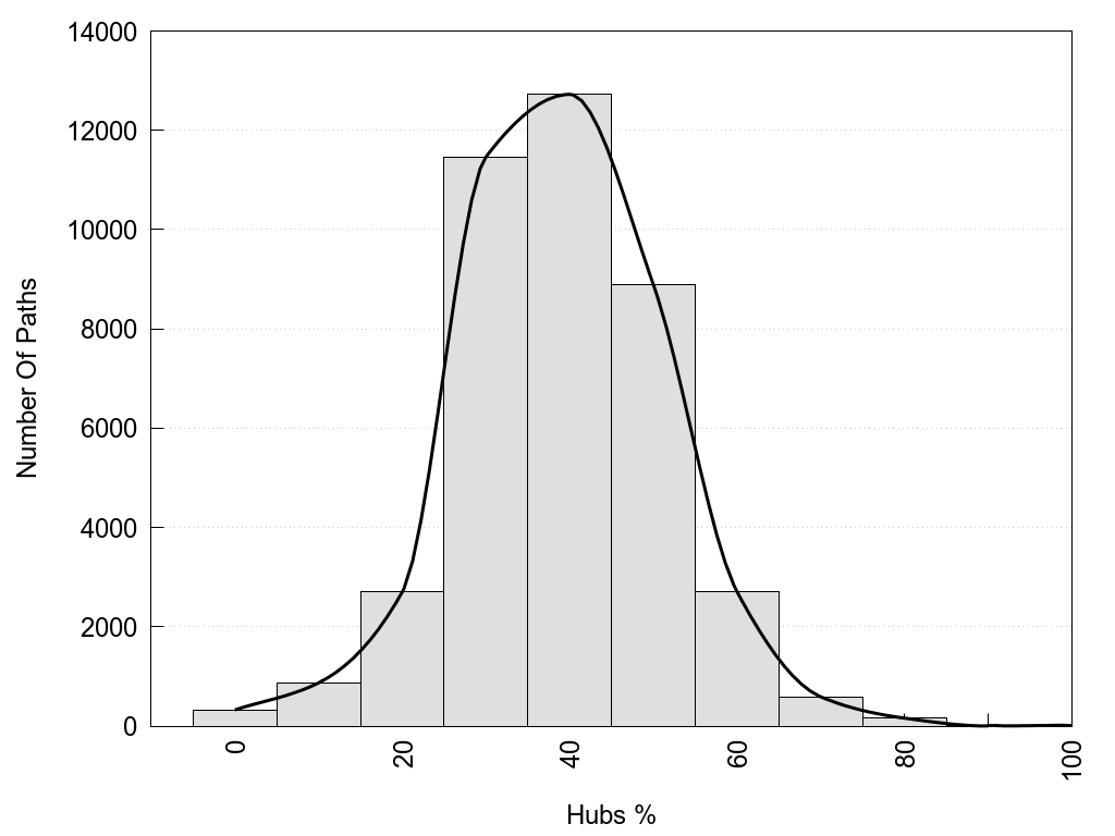 Hub1?, Hub2?: "Yes" if the corresponding node has more than 3 links, otherwise "No".