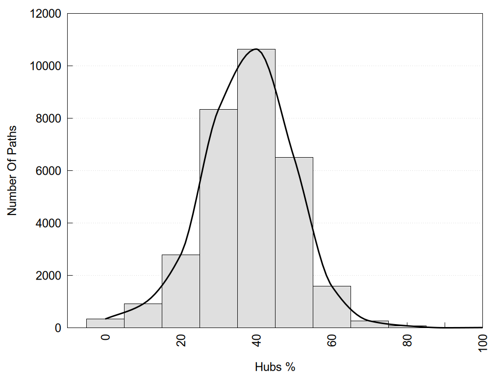 Hub1?, Hub2?: "Yes" if the corresponding node has more than 3 links, otherwise "No".