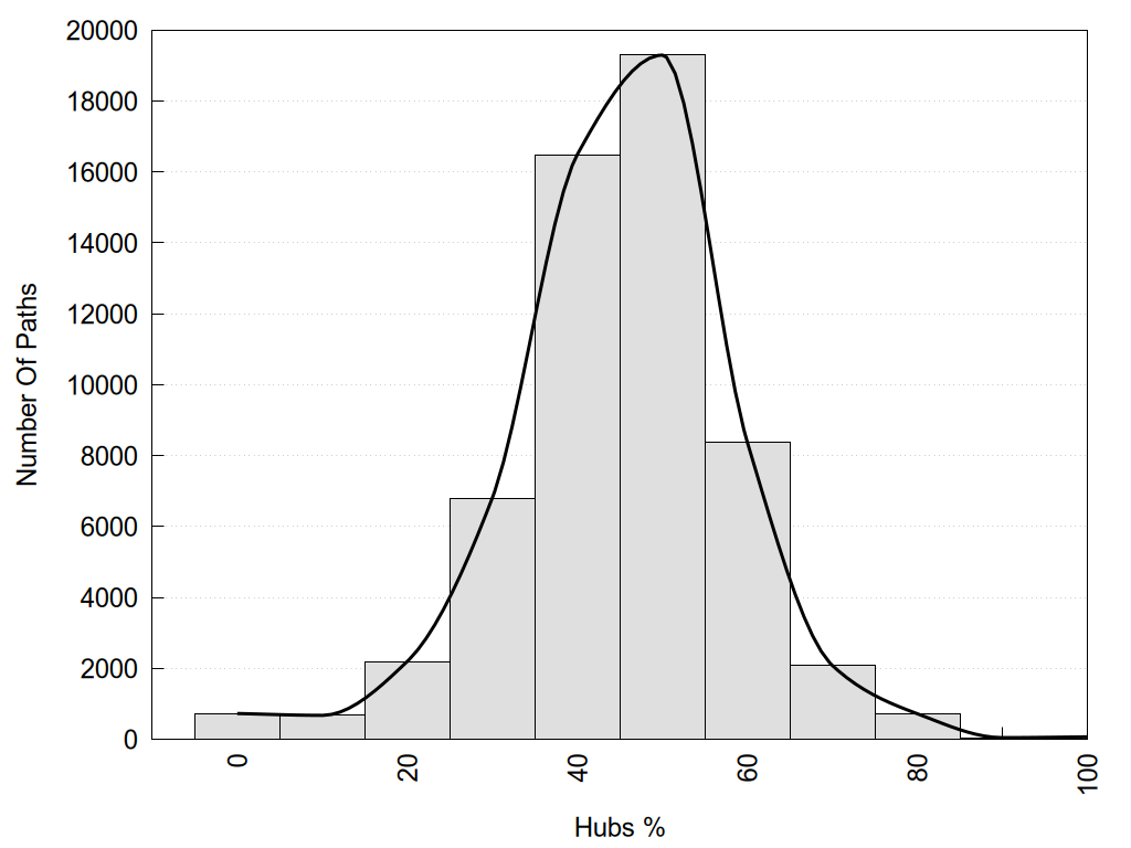 Hub1?, Hub2?: "Yes" if the corresponding node has more than 3 links, otherwise "No".