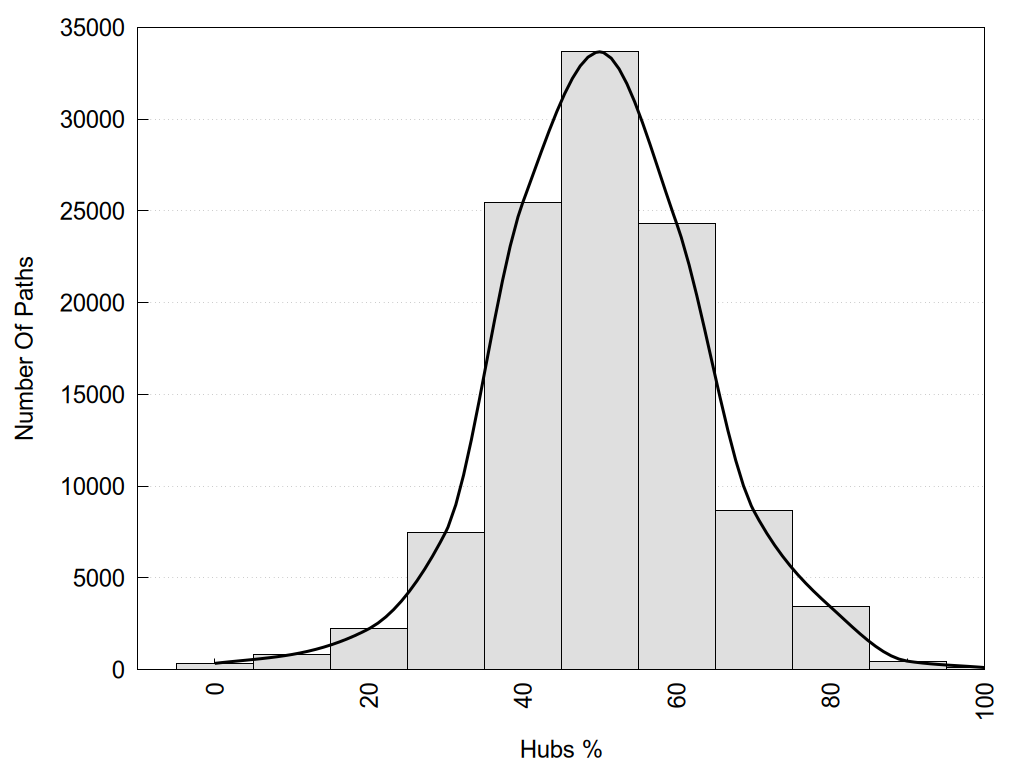 Hub1?, Hub2?: "Yes" if the corresponding node has more than 3 links, otherwise "No".