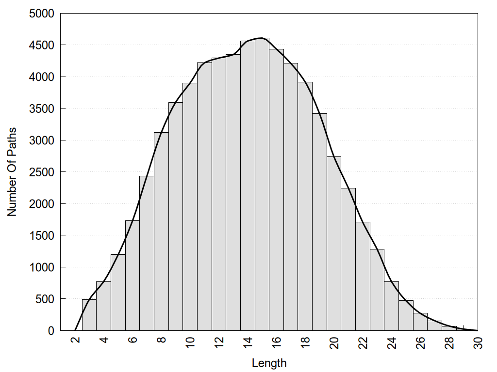 histograms of path distribution according to several parameters