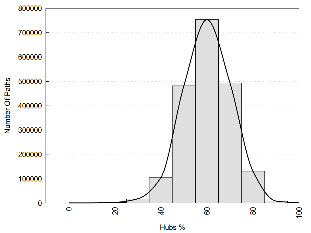 Hub1?, Hub2?: "Yes" if the corresponding node has more than 3 links, otherwise "No".