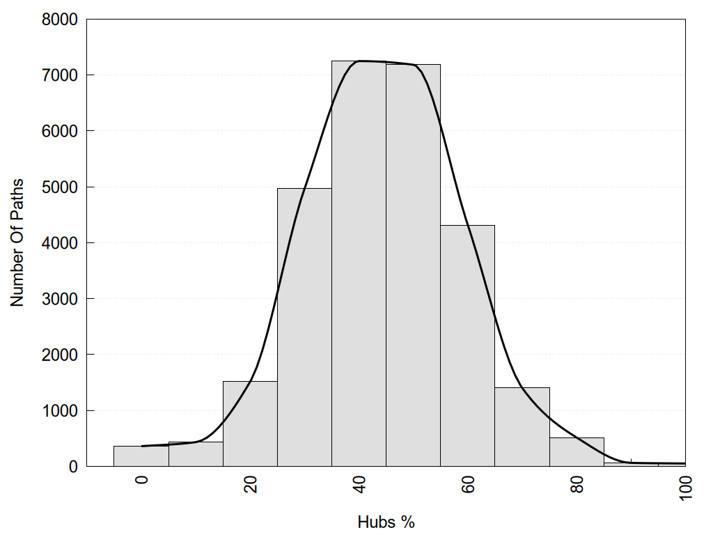 Hub1?, Hub2?: "Yes" if the corresponding node has more than 3 links, otherwise "No".
