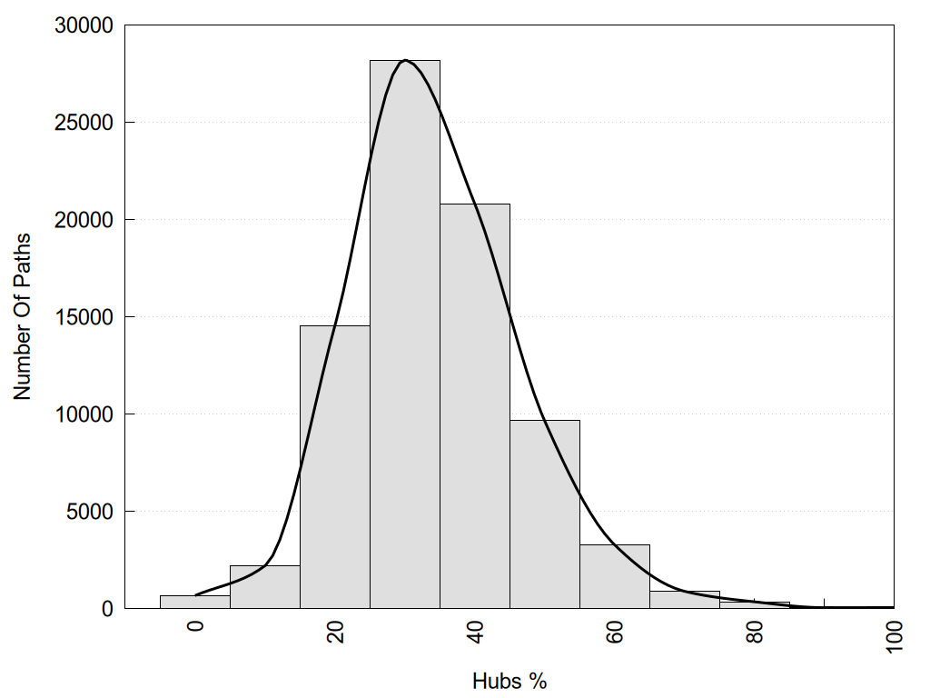 Hub1?, Hub2?: "Yes" if the corresponding node has more than 3 links, otherwise "No".