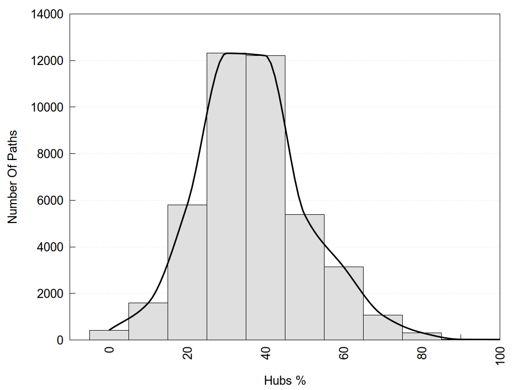 Hub1?, Hub2?: "Yes" if the corresponding node has more than 3 links, otherwise "No".