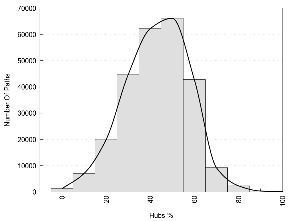 Hub1?, Hub2?: "Yes" if the corresponding node has more than 3 links, otherwise "No".