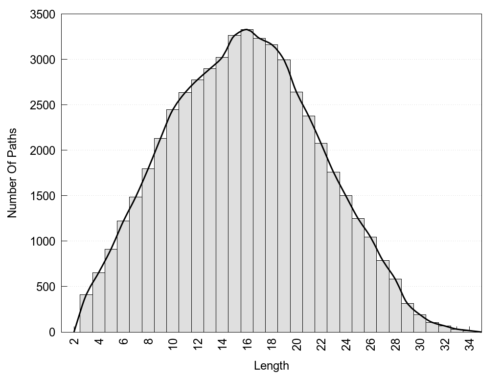 histograms of path distribution according to several parameters