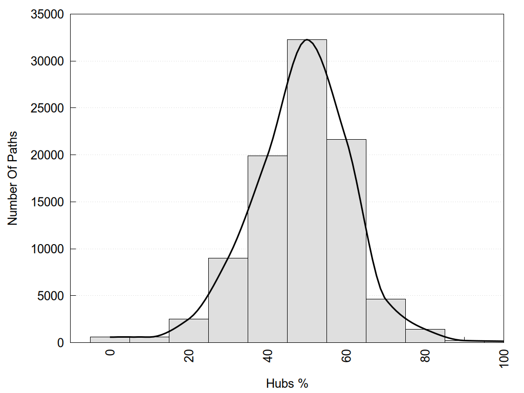 Hub1?, Hub2?: "Yes" if the corresponding node has more than 3 links, otherwise "No".