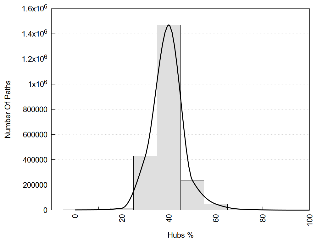 Hub1?, Hub2?: "Yes" if the corresponding node has more than 3 links, otherwise "No".