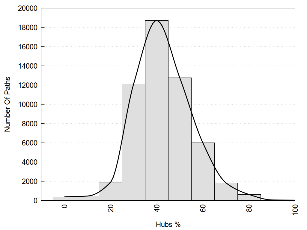 Hub1?, Hub2?: "Yes" if the corresponding node has more than 3 links, otherwise "No".