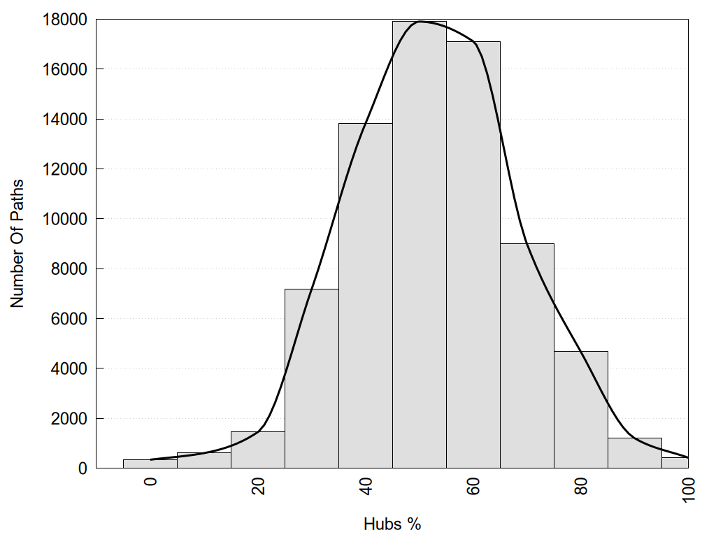 Hub1?, Hub2?: "Yes" if the corresponding node has more than 3 links, otherwise "No".