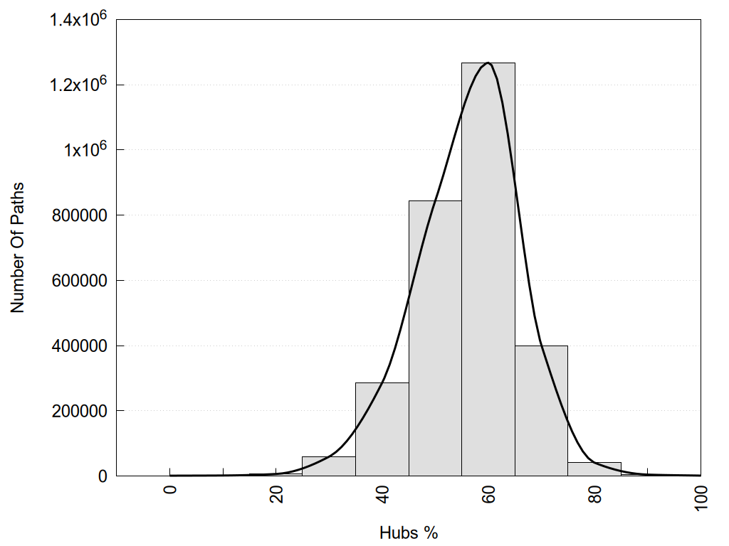 Hub1?, Hub2?: "Yes" if the corresponding node has more than 3 links, otherwise "No".