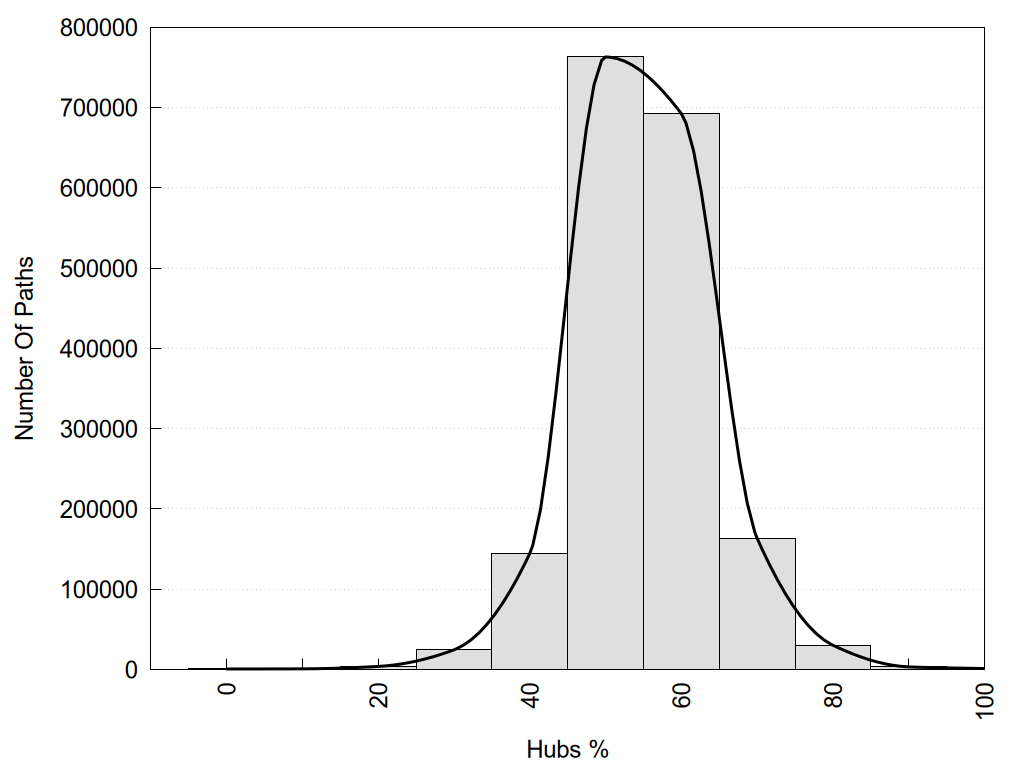 Hub1?, Hub2?: "Yes" if the corresponding node has more than 3 links, otherwise "No".