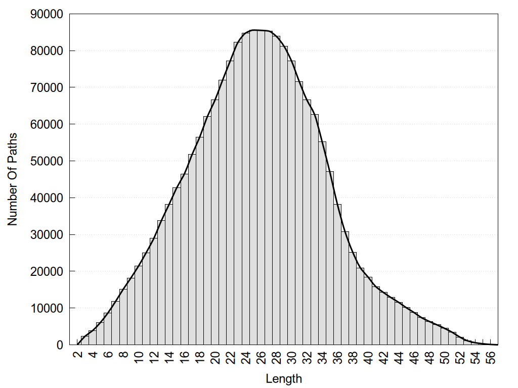 histograms of path distribution according to several parameters