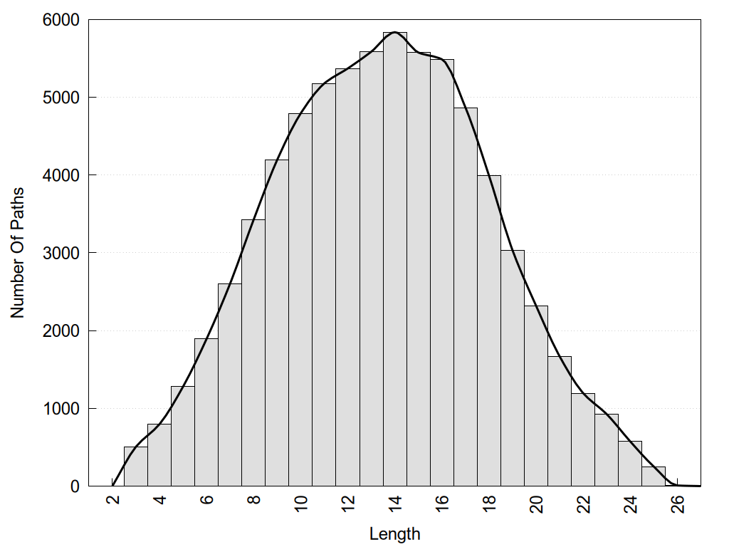 histograms of path distribution according to several parameters