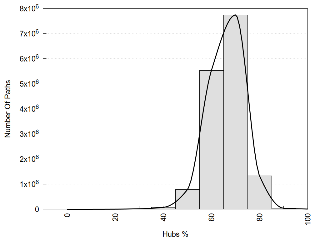 Hub1?, Hub2?: "Yes" if the corresponding node has more than 3 links, otherwise "No".