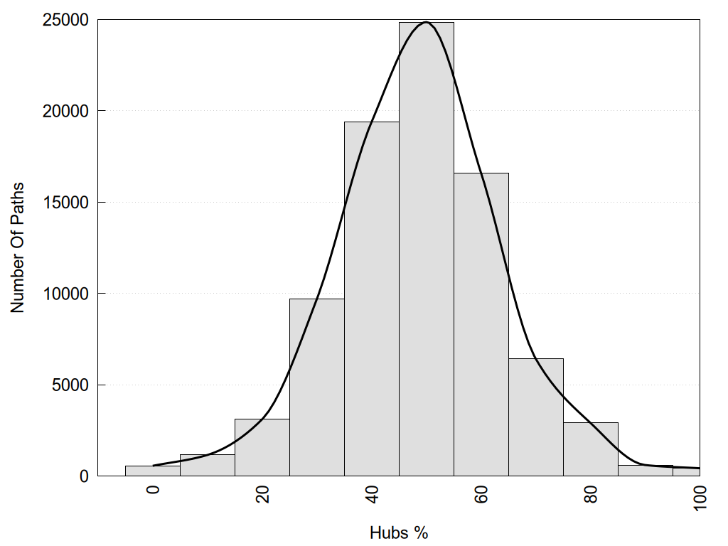 Hub1?, Hub2?: "Yes" if the corresponding node has more than 3 links, otherwise "No".